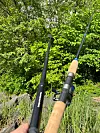 For å ta dette bildet holdes 360-kameraet med en selfiestang ca. 30 cm fra fiskestanga, som vist på eget bilde lenger ned.