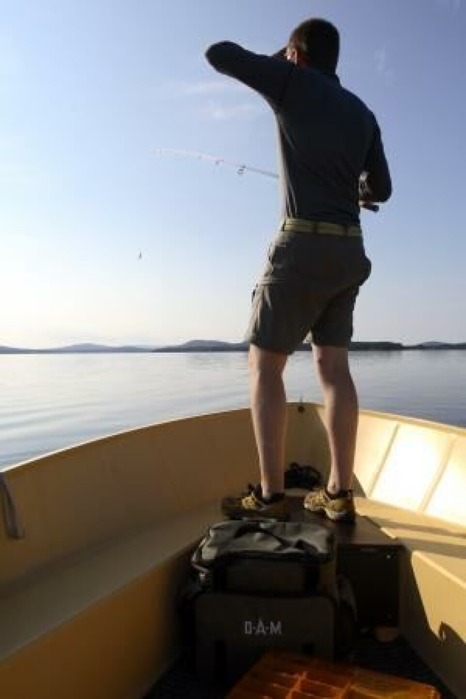 Ekkoloddet viser en svak skrent på seks meter. Bøylen slås over, multisnøret ligger kasteklart over pekefingeren og sjøen bader i sol. Jeg står i baugen og speider etter aktivitet. Meteorologene lovte svak vind mot klokka 10.00, og heldigvis kommer den. Jeg plasserer båten midt på det store platået, vinden forflytter meg i perfekt fart sørover mot de ytterste øyene.