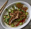 Varm grill eller grillpanne, olje og flaksalt til slutt, og vips, så har du en fin grønnsakblanding. Damper du i tillegg litt spinat, blir det fullkomment.