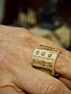 Materialene behandles med stor respekt. Denne ringen er av hjortehorn, dekorert med krystaller fra Swarovski.