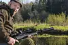 Beveren fortsetter å drive nedover. I vannet er det ikke mulig å se om det er et voksent, eller et ungdyr. Så er den på høyden med oss, vinkler og setter kurs rett inn mot ei liten sklie like overfor oss. Straks den er klar til å klatre i land er rifla i posisjon. Et øyeblikk, som føles som en evighet, blir dyret stående i ro. Kim har konstatert ungbever, ei 85 grains vector impulse kule i kaliber 6,5x55 flyr med en fart av 935 meter i sekundet.