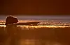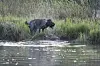Noen minutter seinere er vi samlet. Kajsa blir oppmerksom på den brune klumpen på motstående bredde og hopper i elva, klar for apport. Men dette er ingen and eller gås. Det går greit å dra dyret ut i elva, men så blir beveren i tyngste laget. Beveren søkker på et par meters dyp og må halvveis pilkes opp på grunna hvor Kajsa utålmodig overtar. Der kan hun dra beveren etter seg, og da går det greit. Trygt på land vanker det skamros.