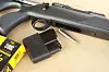 Magasinutløseren sitter inne i avtrekkerbøylen, som er støpt i lettmetall sammen med underbeslaget. Rifla leveres vanligvis med et treskuddsmagasin. Pipa måler 61 cm og er gjenget for lyddemper med litt uvanlige ½-20 UNF.