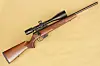 PRODUKTFAKTA: Systemrifle for randtenningspatroner. Stokk i lakkert valnøtt. Myk kappe i gummi og fester for reinbøyler.