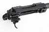 Boltutløseren sitter foran på innsiden av avtrekkerbøylen, som også er i plast, og er støpt i ett stykke med underbeslaget for reduksjon av kostnader.