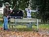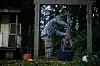 Røyken, Norge. Med grunneiers velsignelse, har lokale buejegere laget en treningsbane i et lite skogholt. Fordelt mellom trær og steiner, står det et tjuetalls figurer som jegerne bruker til trening.