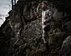 Skal du skifte mens du har på solide jaktstøvler (en fordel i fjellet tross alt), drar du begge glidelåsene helt opp til livet og hekter de av. Så gjenstår bare å vikle buksa rundt livet, her kommer trykknappene til sin rett for å holde alt på plass, før du lukker buksebeinet igjen. På denne måten slipper du å knote med å ta av og på støvlene.
