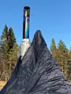 Under test brukte vi forskjellige vedtyper. Ved fyring med tørrfuru oppsto det etter hvert små svimerker i duken, da en del gnister kom seg forbi gnistfangeren. Når det ble fyrt med bjørk, var det derimot ingen problem med gnister på avveie. Om du har et telt/lavvo av syntetisk materiale, bør du kanskje unngå typiske “gnistprodusenter”, som gran og furu.