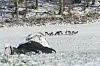 Våren kan imidlertid være lunefull, også på disse kanter. Vi ble møtt av tett snøvær og snøen blir liggende. I slikt vært står alt hjortevilt i ro for å ikke avsette spor; dåhjorten intet unntak.