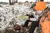 Vi er nede i lav smyging, etterfulgt av stopp og ned i knestående. Knut Arne Gjems har sett en bevegelse ute på venstre flanke. Det er alltid NJFF-lederen, med permanent jaktfeber, som ser dyrene først.