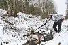Noen lange minutter seinere kommer han ut, avstand rundt 100 meter. Lapua-kula i den velbrukte Sauer-rifla flyr, og sitter der den skal. Bukken tar ut, tipper over kanten og ruller død ned i et dike.