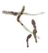 Roper varsku: Hittil er det registrert syv tilfeller av elg smittet med hundens dvergbendelmark, Echinococcus canadensis, i Norge. Denne parasitten (de to øverste på bildet) kan smitte til mennesker og danne cyster i indre organer. De tre nederste parasittene er fetteren revens dvergbendelmark, Echinococcus multilocularis, som per nå ikke er oppdaget i Norge.