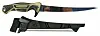 Én kniv er levert med skinnslire og uten dreneringshull. Ikke like praktisk, men dog mer estetisk.