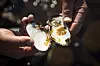 Paul Eric Aspholm holder opp en liten elvemusling. Hvis bestandene er store og dekker en betydelig del av elva, vil mesteparten av vannføringen i vassdraget filtreres gjennom muslingene i løpet av ett døgn. På den måten bedres vannkvaliteten også for andre arter.