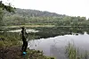 Det blir to refusjoner til, før Simen anbefaler at vi går ned til den andre dammen for å sjekke om det er fisk i vika.