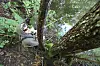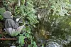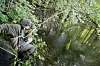 I den første dammen vi kommer til er det en liten overgrodd vik, hvor vi så vidt kan skimte bunnen. Det er ingen karper å se.