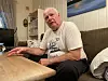 Finn Rønnild hjemme i fiskerommet i Stavern. På veggene henger stenger, kniver, sneller og andre minner fra et langt fiskeliv.
