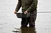 Kurven har også en utskjæring i toppen, som fungerer som stangholder. Nyttig når man f.eks skal bytte fluer eller gjøre annet som krever to hender. Den lave vekten og det myke materialet gjør at kurven skiller seg fra mange andre varianter jeg har prøvd. Den former seg etter kroppen, og man slipper å få vondt i fingrene når man uforvarende slår borti den under dobbelttrekket. (Det å slå iskalde fingre på harde plastkurver er nesten like smertefullt som å slå opp en gammel sjakkskade.) Det myke materialet gjør også at den er nesten umulig å ødelegge, og den kan fint rulles sammen og stappes i dagstursekken hvis man ønsker å ha den med i marka eller på fjellet.