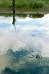 Siden ørreten tar vårfluepupper som piler på overflaten, kan jeg fiske flua med bevegelse. Klok av skade bytter jeg ut fortomspissen på 0,12 mm med 0,16, vader forsiktig ut, og blir stående delvis vaklende på en rot. Kinkige forhold, både for vannkast og overhodekast. Heldigvis er ikke fisken skremt av vadingen og vaker fortsatt.
