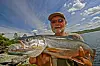 Vi jigger hissig langs bunnen. Røyebeistene raser etter og regelrett sloss om den lille gummigodsaken. I et eksplosivt angrep sluker en av purkene jiggen, før den raser av sted til lyden av ei hylende snelle.