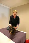 Anne-Mette Kirkemo, som til daglig jobber som fylkessekretær i NJFF Buskerud, er blant dem som har god erfaring med fysioterapi på sine hunder. Hun har fem dachshunder i stallen. En av tispene i flokken, Yatzy, har en svakhet i ryggen, noe som krever litt ekstra oppfølging. Kirkemo forteller at behandlingen hos Oksett har gitt resultater.