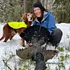 – Vår egen 14 år gamle cocker spaniel var med på skiturer hele vinteren, men da hun ble 15 fikk hun sitte på fanget i nedoverbakkene. Har du en eldre hund, bør du bremse så hunden holder følge i bakker på ski- og sykkelturer. Du bør også tilpasse terreng og lengde på turene ut ifra hva hunden orker. Noen hunder klarer ikke begrense seg, da må du som eier lære når du bør si stopp, råder veterinæren.