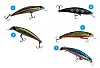 Fem ulike varianter av spearhead ryuki 70 som gjør seg godt for norske fiskeforhold.