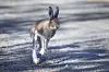 Ganske riktig, 100 meter nede i veien kommer pus hoppende i vår retning. Jeg krøker meg ned i veikanten med kameraet klart til skudd. Haren kommer nærmere, stadig nærmere …