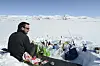 Mannen er i sitt rette element, men har et mistenksomt smil om munnen. Isfiske i starten av mai har nemlig sine ulemper: Fiskerne er blitt som fiskene – knallrøde i kjøttet. Det lukter hel­stekt gris, og innen kvelden er omme er ansiktene våre som stivnet melis. Vi mekker et måltid med røye, flatbrød og eggerøre, og hiver oss i teltet før huden pådrar seg ytterligere skader. Røyerunden fortsetter med solfaktor 30 …