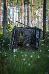 –Vi har alltid brukt naturen, sier forfatteren. En gammel fangstinnretning i skogen sier sitt.