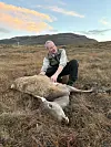 Oppe i heia er hjorten felt. Alasdair har slengt jakka fra seg for å vomme. Dagen er lys og lett her på den ellers så regnfylte øya.