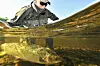 – Laksen skal stå bak steinene der, sier han og peker. Så skjer alt fort: Først slår en smålaks seg av, før Aasland kroker og gjenutsetter to smålakser, som støpt i samme form.