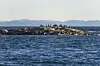 På vei utover ser vi en god del «svartfugl», sittende på skjær og fordøye frokosten. Såframt det ikke sitter en havørn eller to på en holme i nærheten. Da er det fritt for skarv. Havørnbestanden har tatt seg voldsomt opp de siste 10-15 årene.