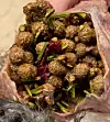 Konglene var fra foregående sommer med diameter rundt 0,5 cm. Konglene må være god føde, de orrfuglene vi og vennene våre felte i fjor vinter, og som vi undersøkte, hadde fulle kroposer av slike furukongler, selv om alle vet at orrfuglen eter bjørkeskudd og bjørkerakler om vinteren.