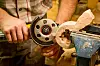 Frode Gammelsrud har investert i en Kirjes spesialmaskin med fleksibel arm. Med forskjellige såkalte pusserondeller, finpusses nå koppen utvendig og innvendig.
